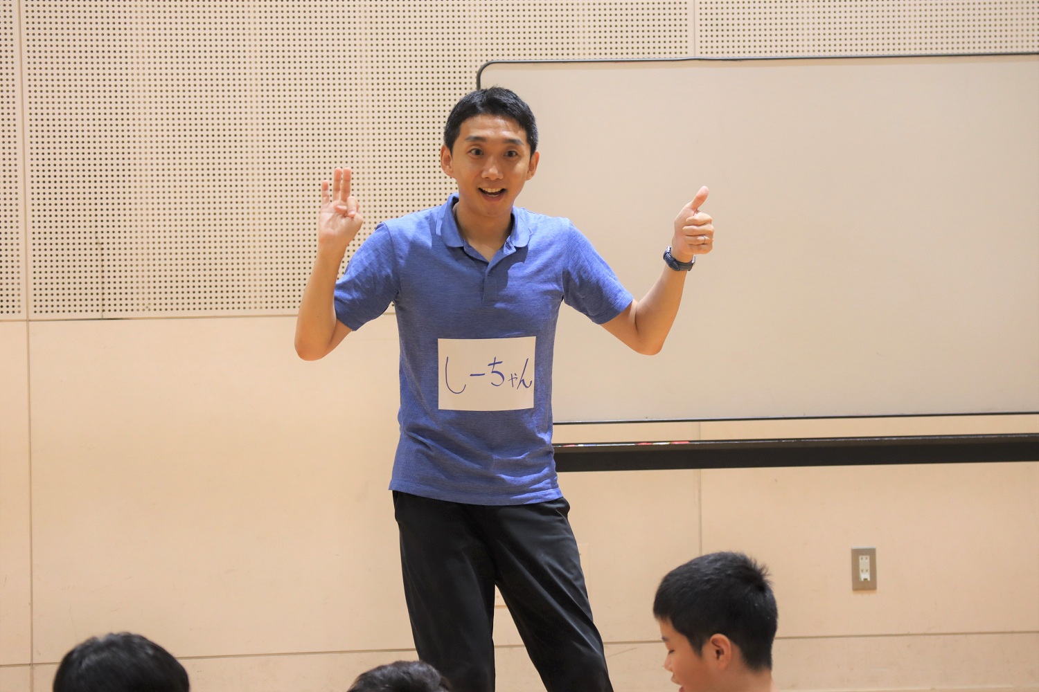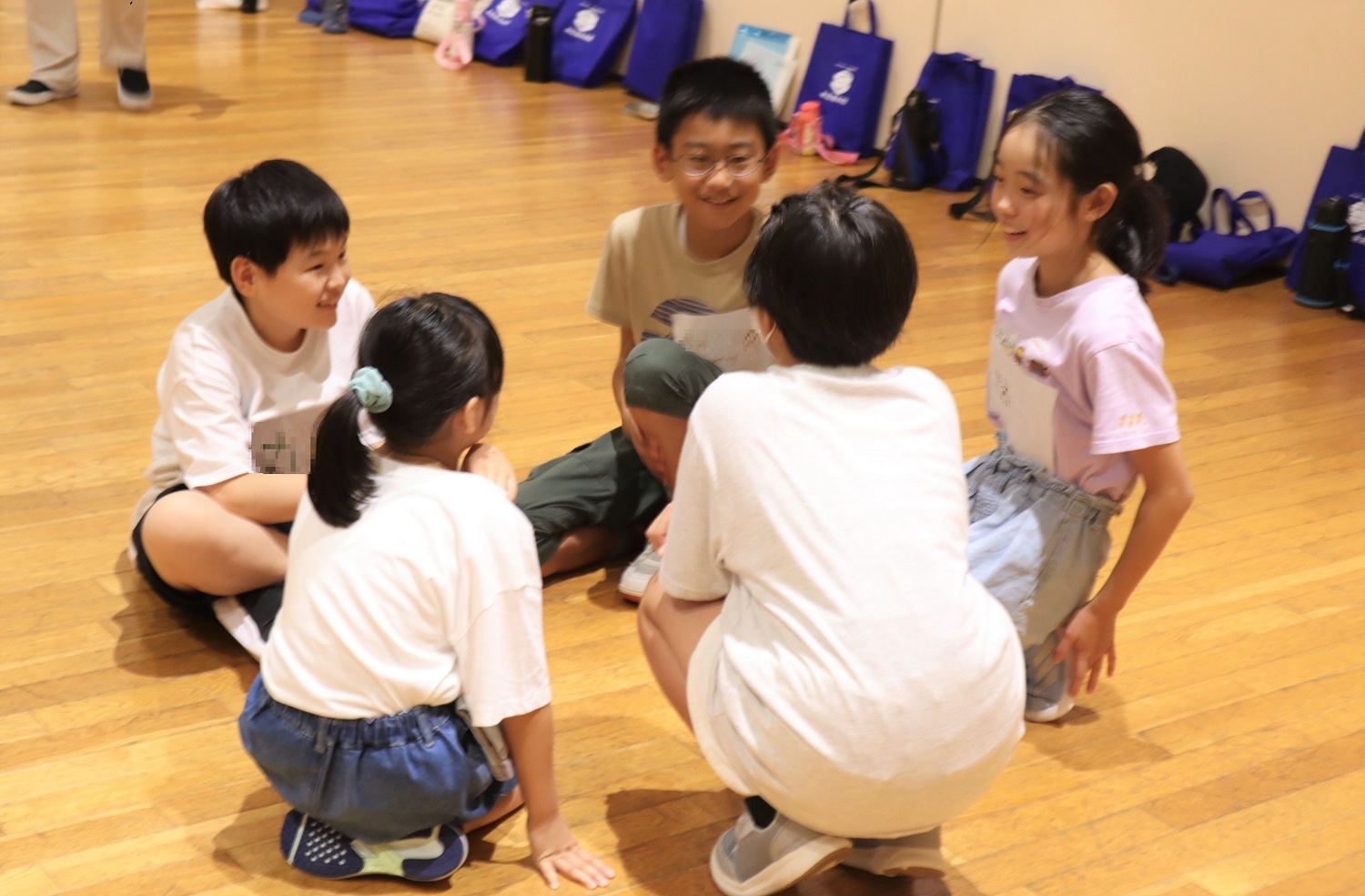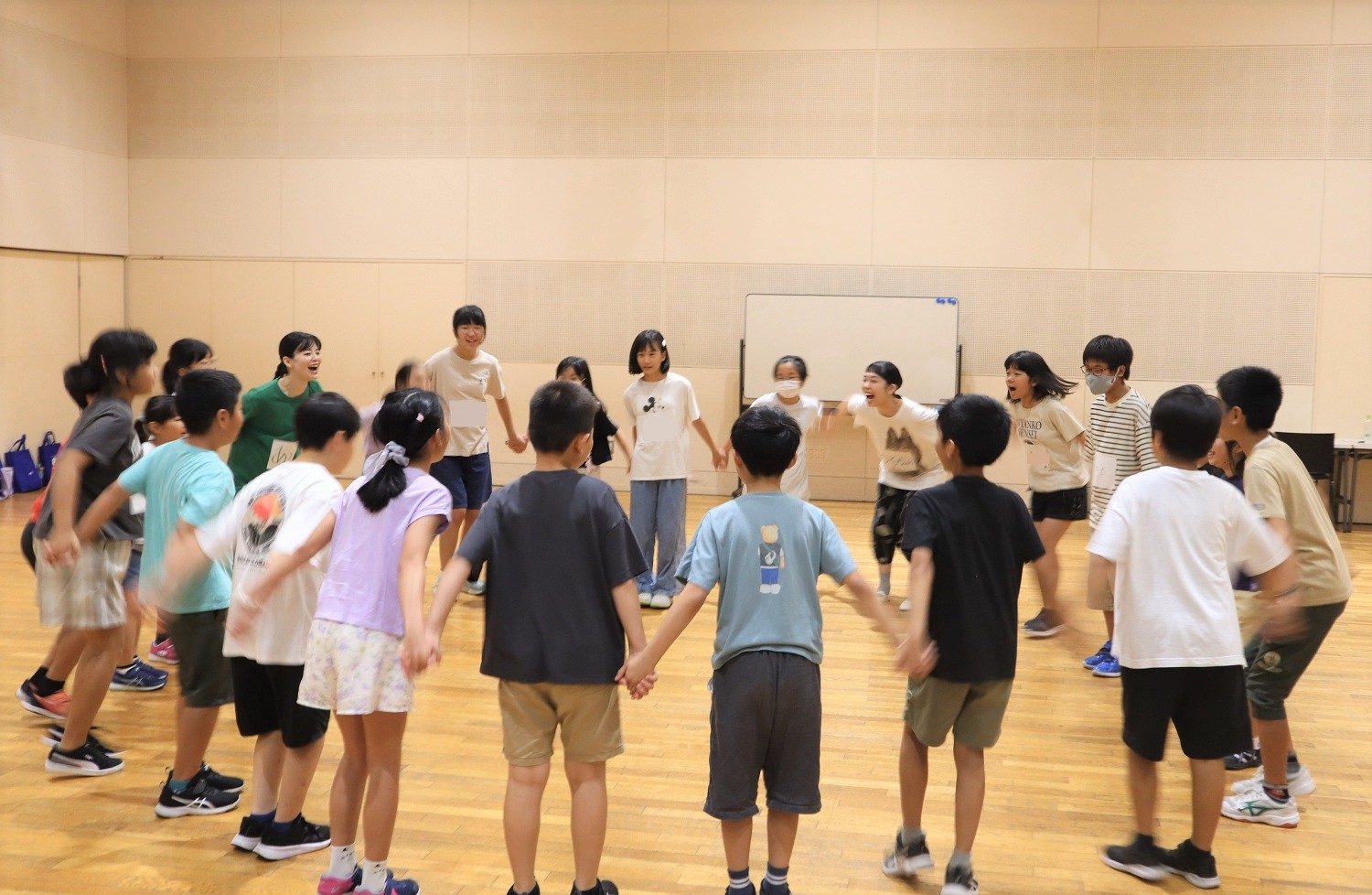 お互いを知るための自己紹介ゲームをしました。ジェスチャーのみでお誕生日順に並んでみたり、円になって「一人が名乗ったら、全員でその名前を元気よく呼ぶ」というルールでお互いの名前を覚えたり、交流を深めました。