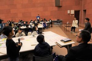 「質問したい人!」と進行役が尋ねると、たくさんの塾生から手が挙がりました。