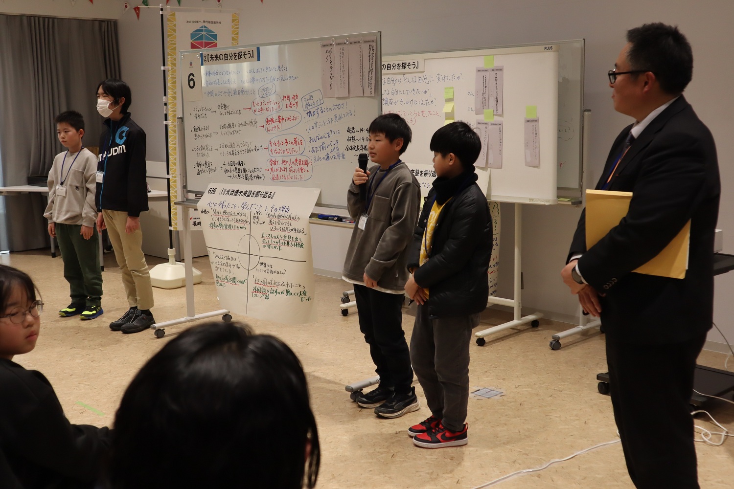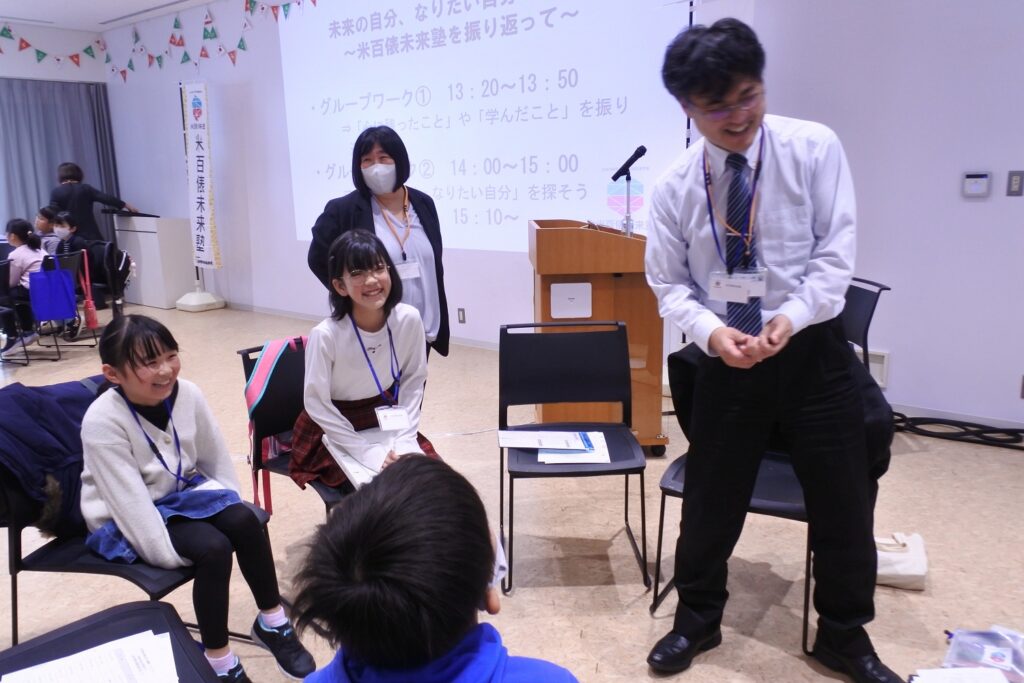 何人かの塾生は、未来塾に参加する前は、「自分の意見を言うことが不安だった。」、「知らない人と話すことが苦手だった。」と話していました。しかし、未来塾に参加し、班活動の中で自分の発言を他の人に認めてもらえたことで自信につながり、今後、自分から話しかけたり人と関わっていきたいと語ってくれました。その他にも、「未来塾で学んだ「話す力」「伝える力」「考える力」を基に、小さな目標でもあきらめずにがんばりたい」、「意見を共有することの楽しさを知れたため、将来協力してひとつのものをつくりあげたい」、「『米百俵』の精神を知ったことで、未来のことを考えるようになった」など、未来塾をとおして成長した自分を実感するとともに、学んだことを将来や普段の生活と結び付け、いかしていきたいという意欲が見られました。