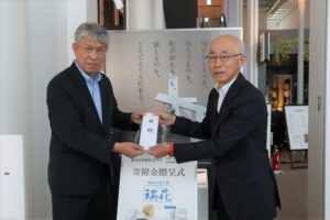 株式会社瑞花代表取締役の阿部様からは「米百俵デーでは、子どもたちが米百俵未来塾で学んだことをいきいきと発表する姿が見られた。子どもたちを笑顔にし、未来を明るくする取組につなげてほしい」というメッセージとともに寄附金を贈呈いただきました。財団では、今後もより一層、次代を担う長岡の子どもたちの育成に取り組んでまいります。